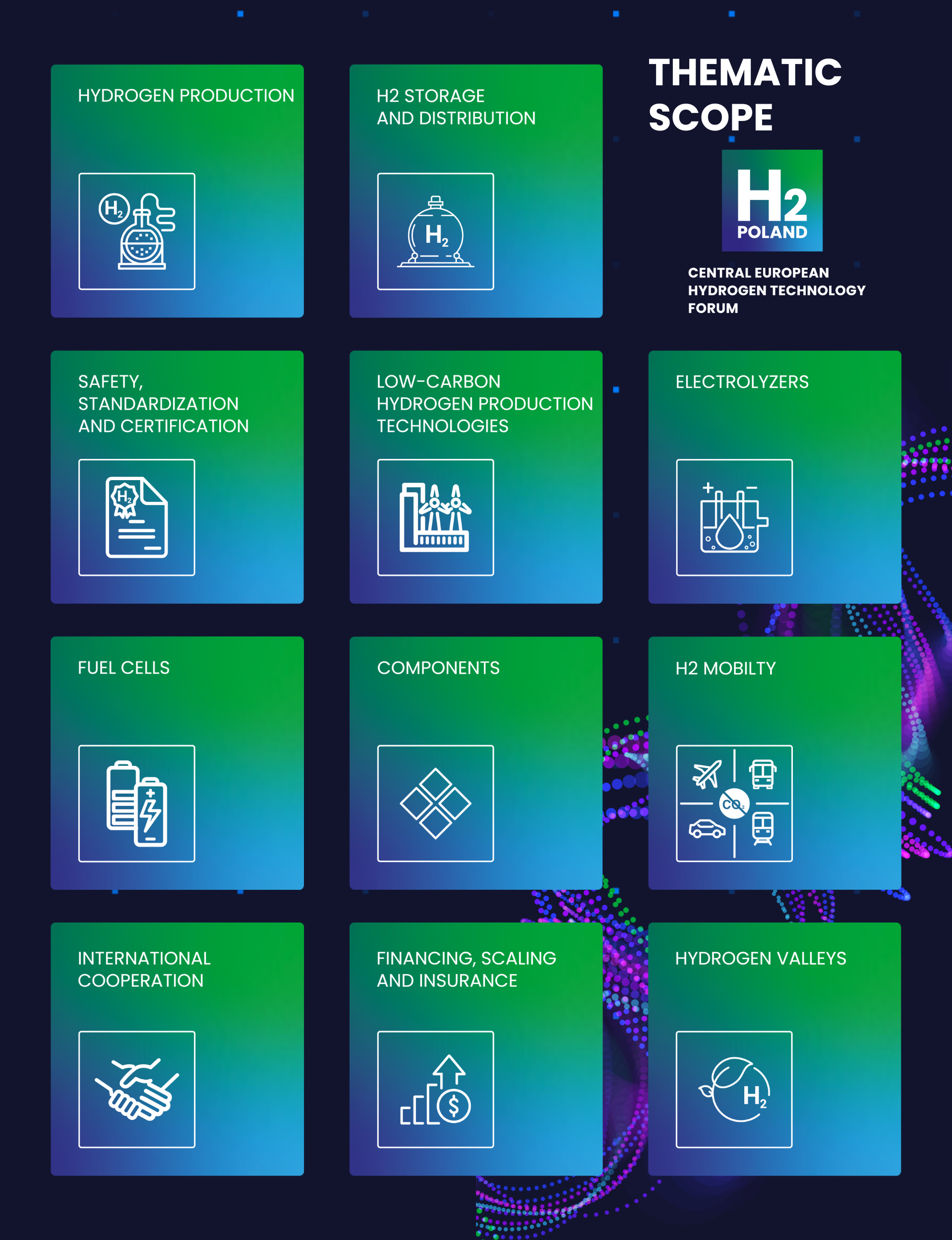 H2POLAND is the first trade fair in Poland and Central and Eastern Europe devoted entirely to hydrogen technologies. The forum consists of meetings where discussions about the future of decarbonisation and the European economy play a key role. H2POLAND is also a meeting place for industry leaders, decision-makers, experts and suppliers of innovative solutions for the energy sector of the future.