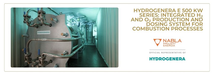 The Hydrogenera system is based on the E Series 500 kW alkaline electrolyser module, with the possibility of battery storage and scaling of devices for larger furnaces, and its integration into the customer's plant. The system generates H₂ and O₂ on site for controlled injection into existing hydrocarbon fuel combustion processes. In an optimised configuration, it improves process efficiency by up to 30% and reduces fuel consumption and emissions. It includes design, installation, commissioning and servicing.