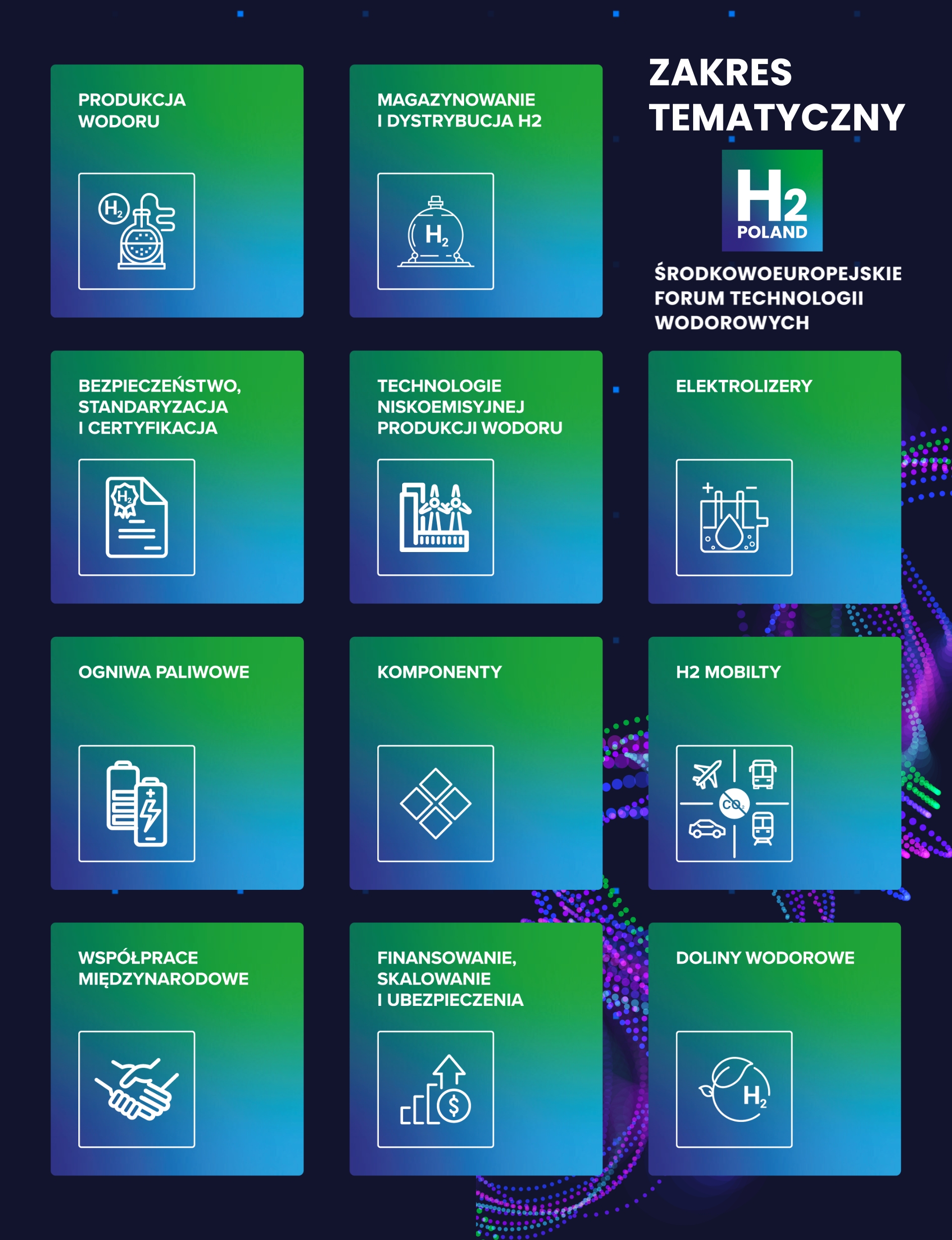 H2POLAND to pierwsze w Polsce i Europie Środkowo-Wschodniej targi poświęcone w całości technologiom wodorowym. Forum to spotkania, podczas których kluczową rolę ogrywają rozmowy o przyszłości technologii wodorowych. H2POLAND to także miejsce spotkań liderów sektora, decydentów, ekspertów i dostawców innowacyjnych rozwiązań dla energetyki przyszłości.